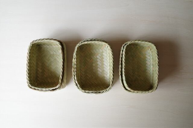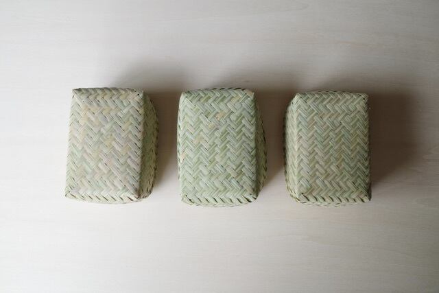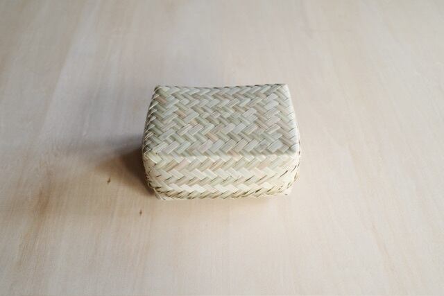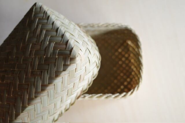 ラオスの小さな村で、ひとつひとつ丁寧に編まれた小さな竹の収納箱。